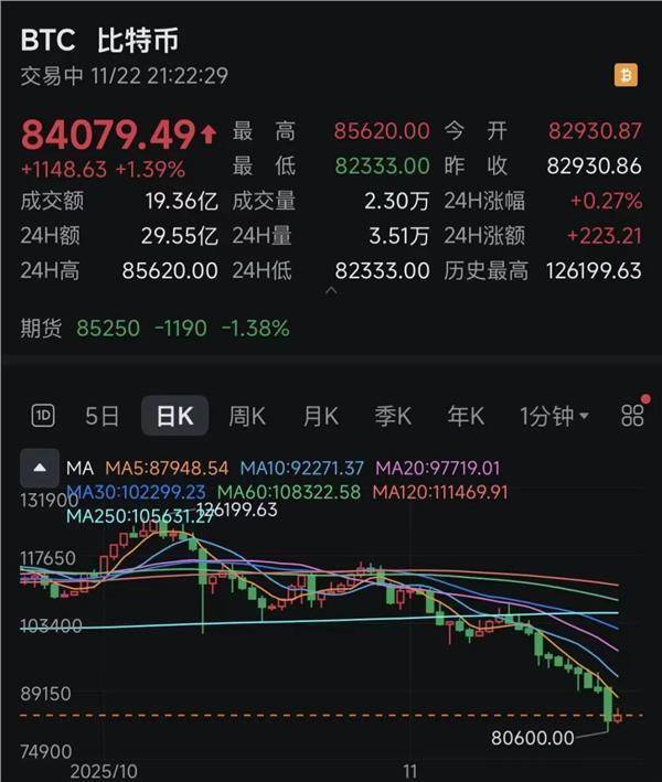 首先由于近期下跌幅度过大,比特币短期之内或迎来反弹。今年以来,比特币一度涨至126000美元以上,而目前价格不到84000美元,回调幅度巨大。